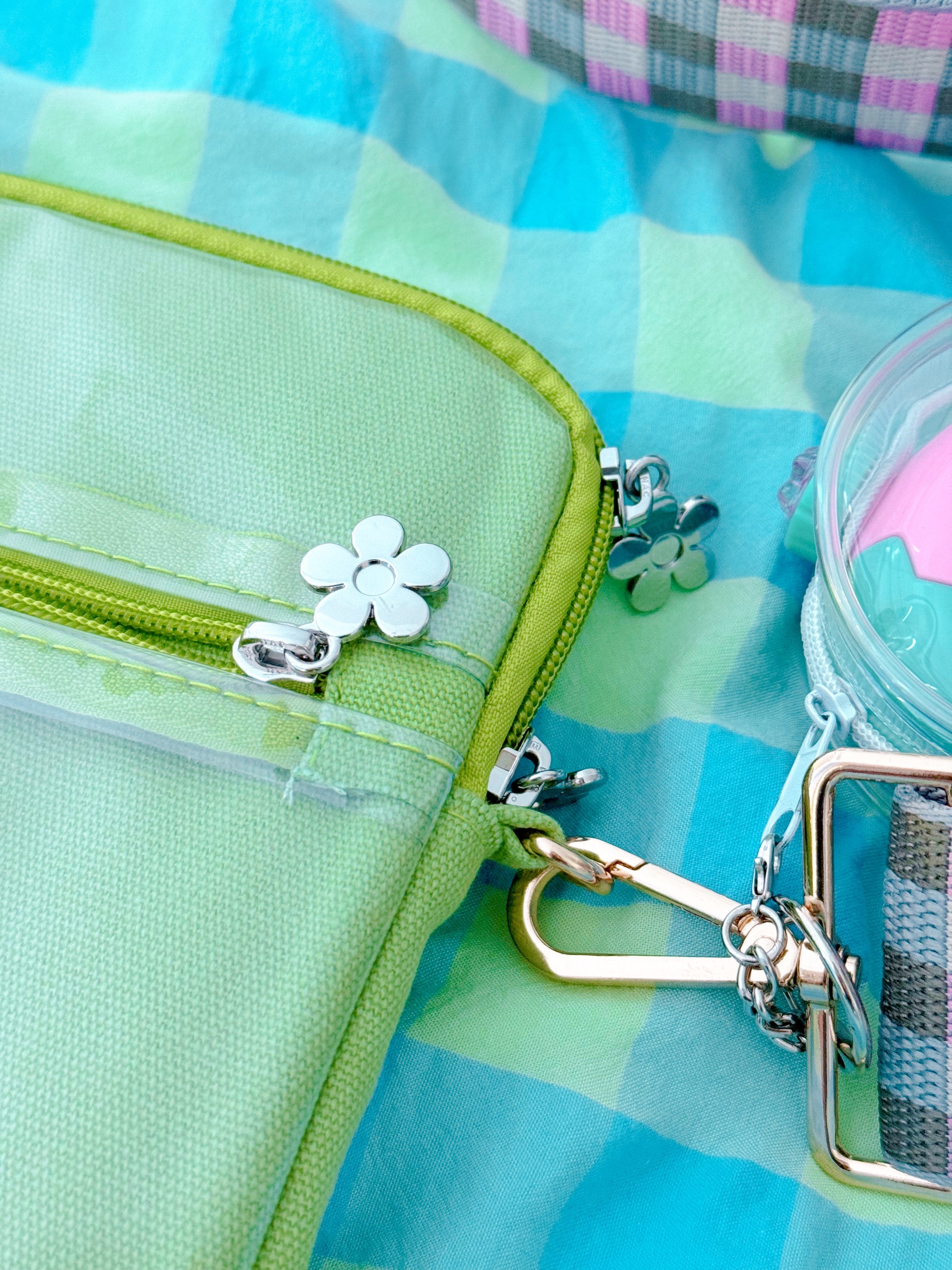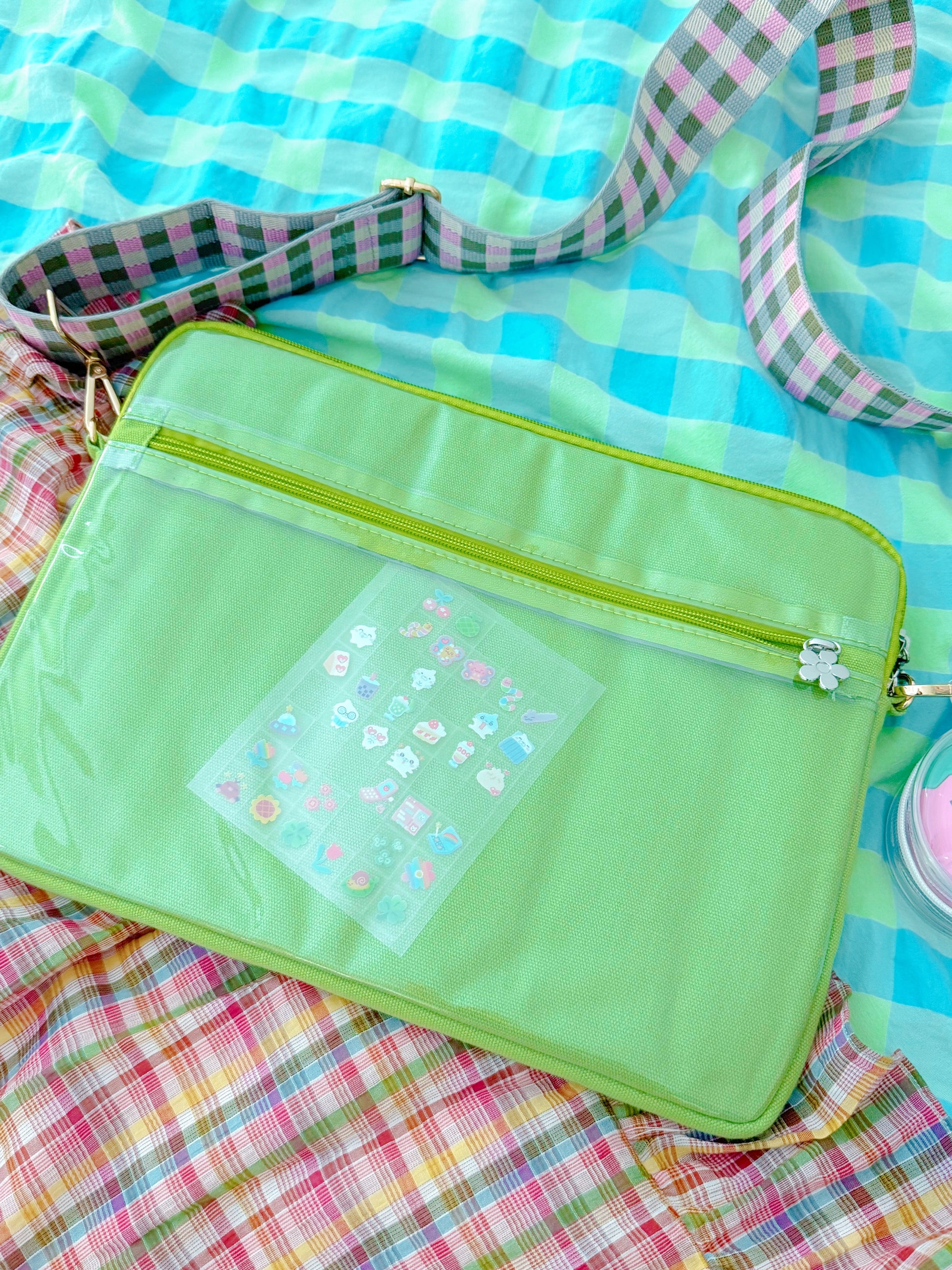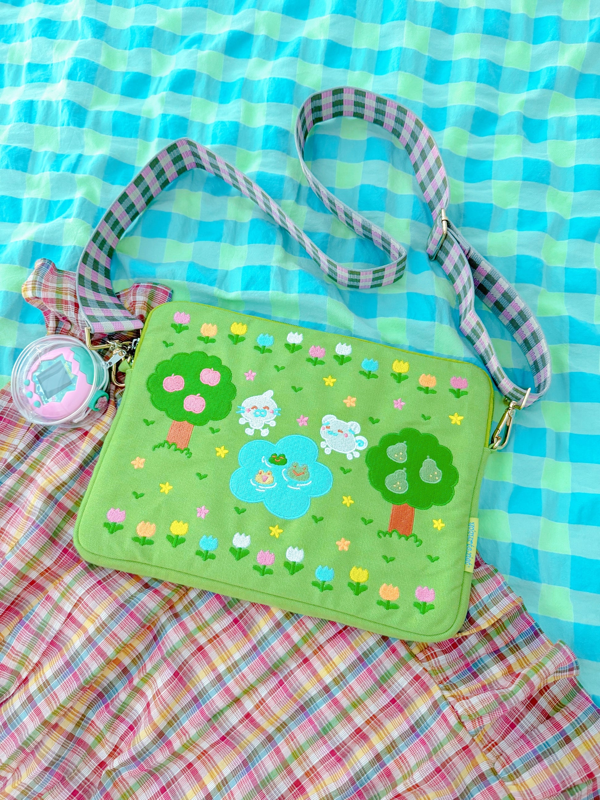 it comes with a removable gingham strap so you can wear it as a bag!